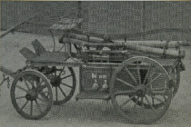 Ročna brizgalna na vozu, v katero je bila vprežena konjska vprega s posebej prirejenimi sedeži za moštvo in potrebno pripadajočo opremo, z karbidovko za vožnjo ponoči.